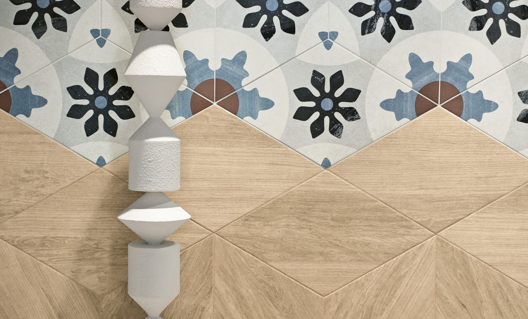 BRIDGE si distingue per l’audace e innovativo formato Rombo, una vera e propria rivoluzione nell’ambito dell’interior design. Sia che tu scelga di posarlo singolarmente o di accostarlo al classico chevron, le possibilità creative sono praticamente infinite. Bridge offre una selezione di quattro legni affiancati a decori ispirati alle iconiche Cementine_20, regalando un mix irresistibile di grafiche e formati per composizioni sorprendenti. Il legno, con la sua calda naturalezza, aggiunge un tocco di eleganza e familiarità agli ambienti. I quattro tipi di legno, presenti sia nel nuovo formato rombo che nel tradizionale chevron, permettono combinazioni in grado di trasformare gli spazi con atmosfere vivaci e accoglienti.