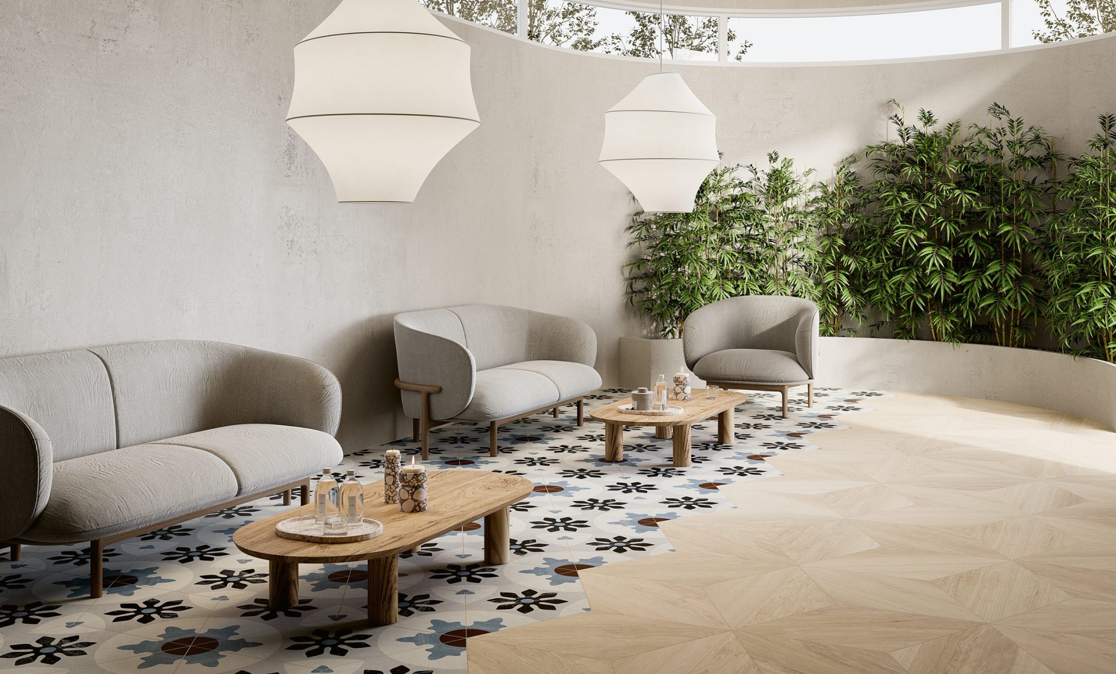 Le Cementine, simbolo di un design retrò reinventato, sono gli elementi decorativi distintivi di questa collezione. Quattro affascinanti motivi, ispirati alle iconiche Cementine_20 di Fioranese, si evolvono in forme uniche, creando superfici irripetibili. L’accostamento di legni e cementine crea una sinergia di calore, modernità e originalità, unendo elementi tradizionali e moderni per conferire agli ambienti un design originale e di grande impatto estetico. Grazie alla versatilità di due forme modulari, il nuovo formato rombo e il più classico chevron, puoi sperimentare accostamenti creativi e suggestioni in linea con le ultime tendenze dell’abitare contemporaneo. Scegli di posarli singolarmente o combinati tra loro per creare modelli geometrici visivamente accattivanti e dare vita a spazi unici. Lasciati ispirare dalle infinite combinazioni di forme, colori e stili: con Bridge ogni spazio è un palcoscenico per la tua creatività senza limiti.