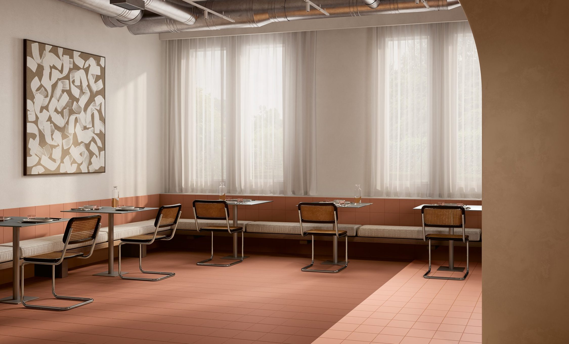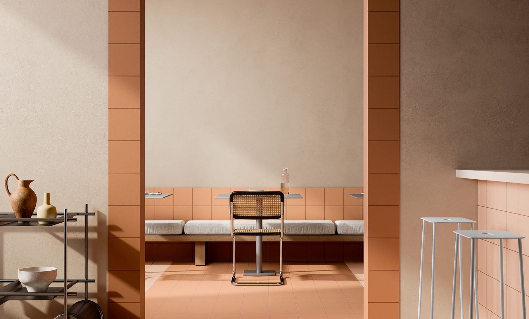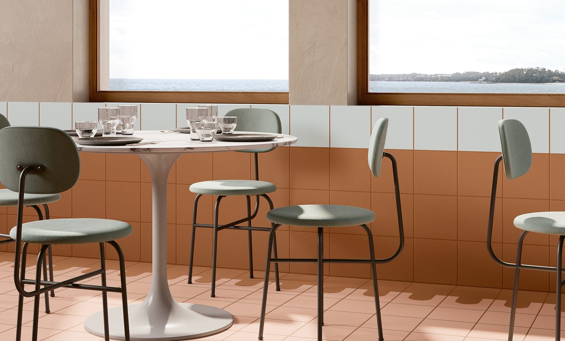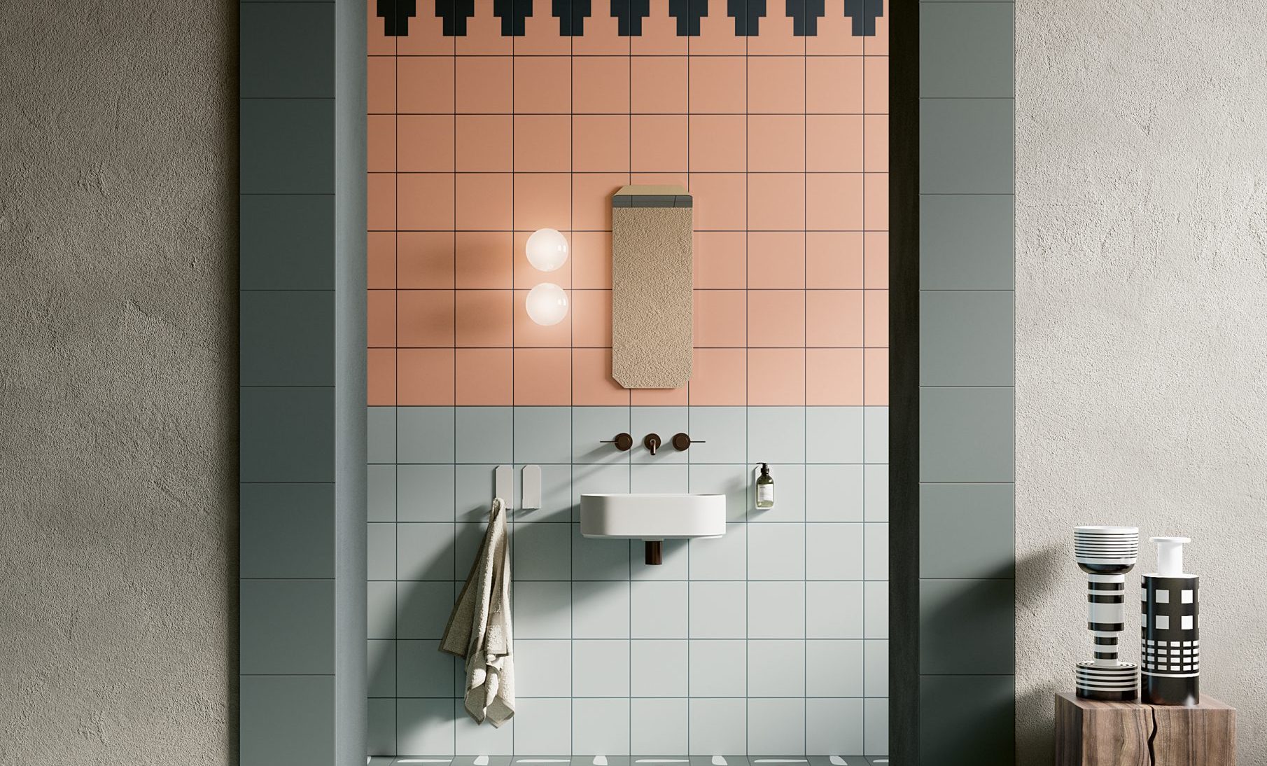 Partendo dalla definizione di paesaggio, legata sia alla reinterpretazione del decoro nel patrimonio architettonico italiano, sia agli elementi naturali del nostro territorio, abbiamo studiato una collezione esclusiva di superfici ceramiche che consentisse composizioni decorative e cromatiche, per contrasto o affinità di toni, con l’obiettivo di generare infinite ‘visioni’ progettuali e immaginare le pareti di casa come paesaggi più vasti in cui ritrovare sensazioni oniriche e primordiali, con grande libertà e fantasia.