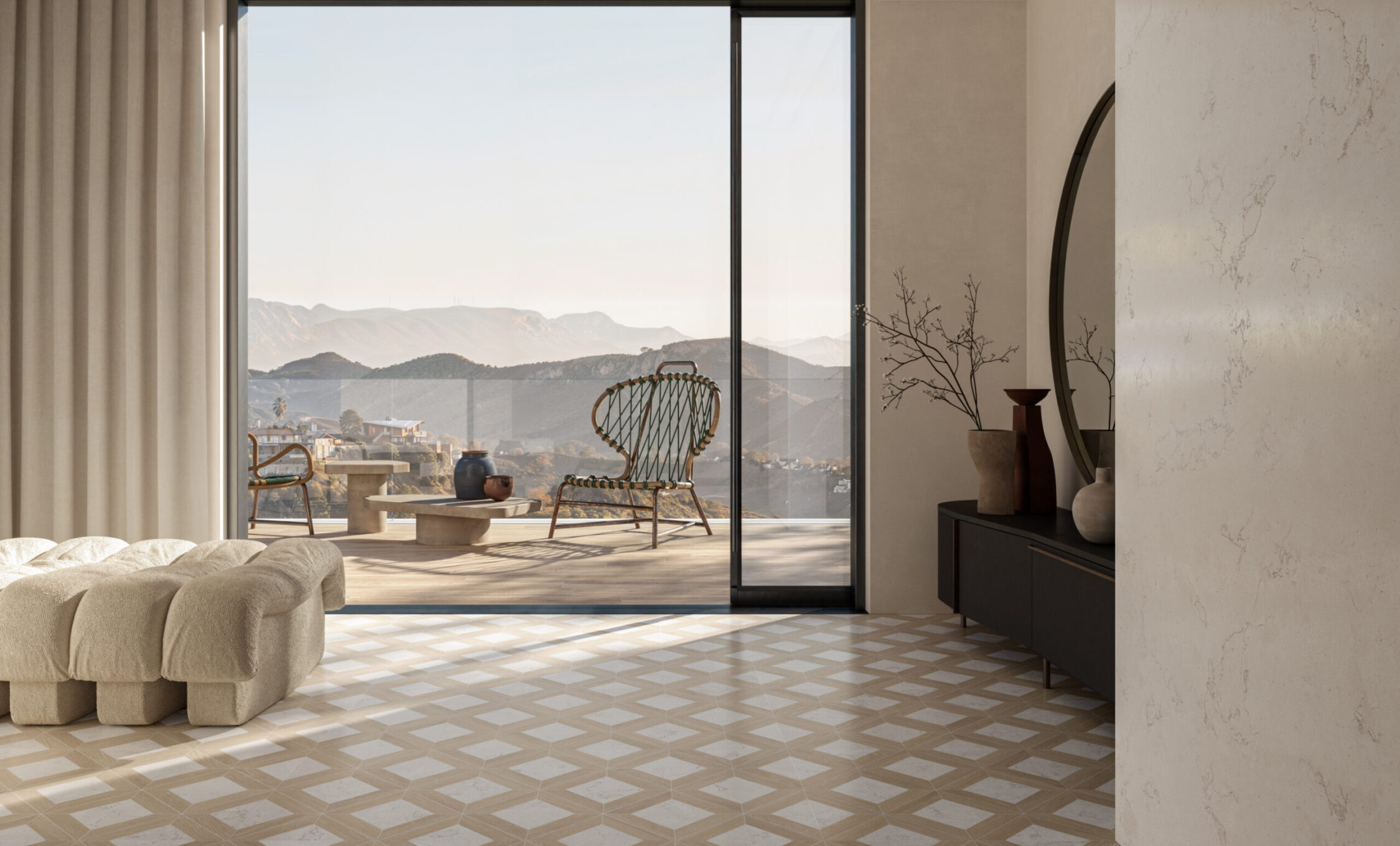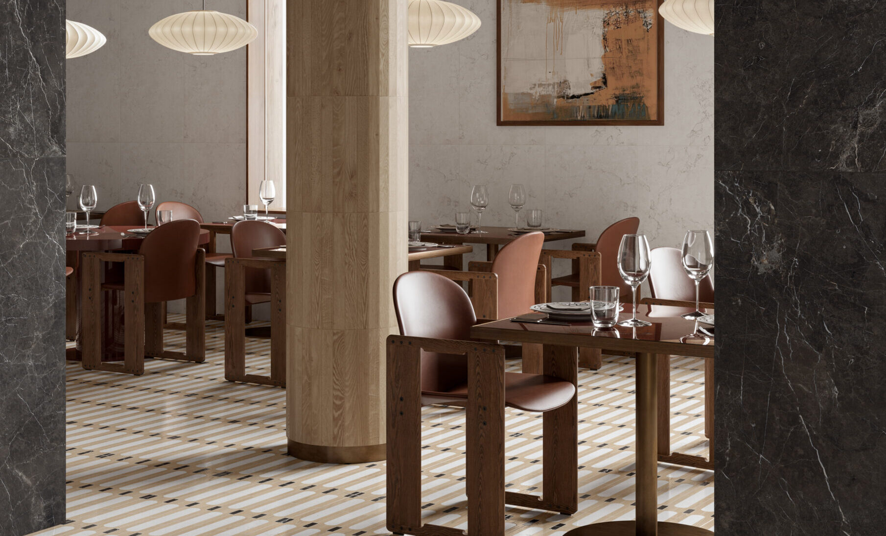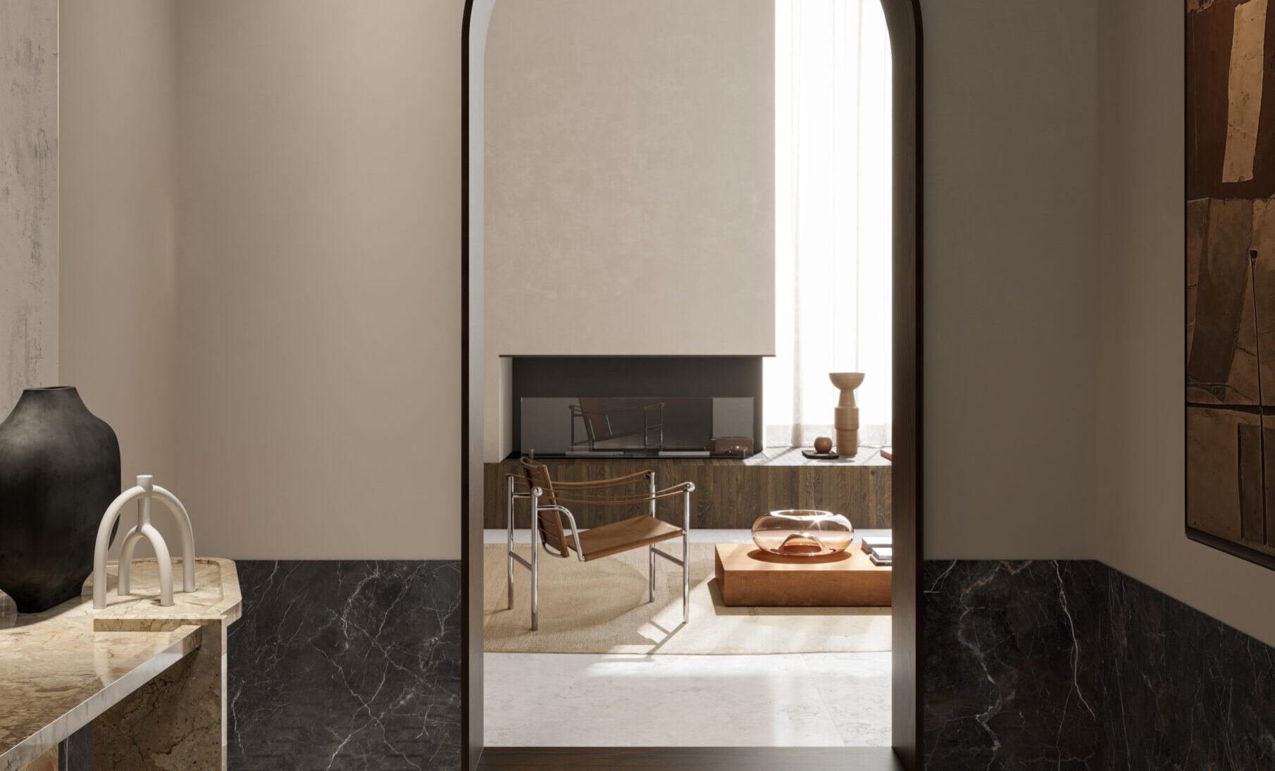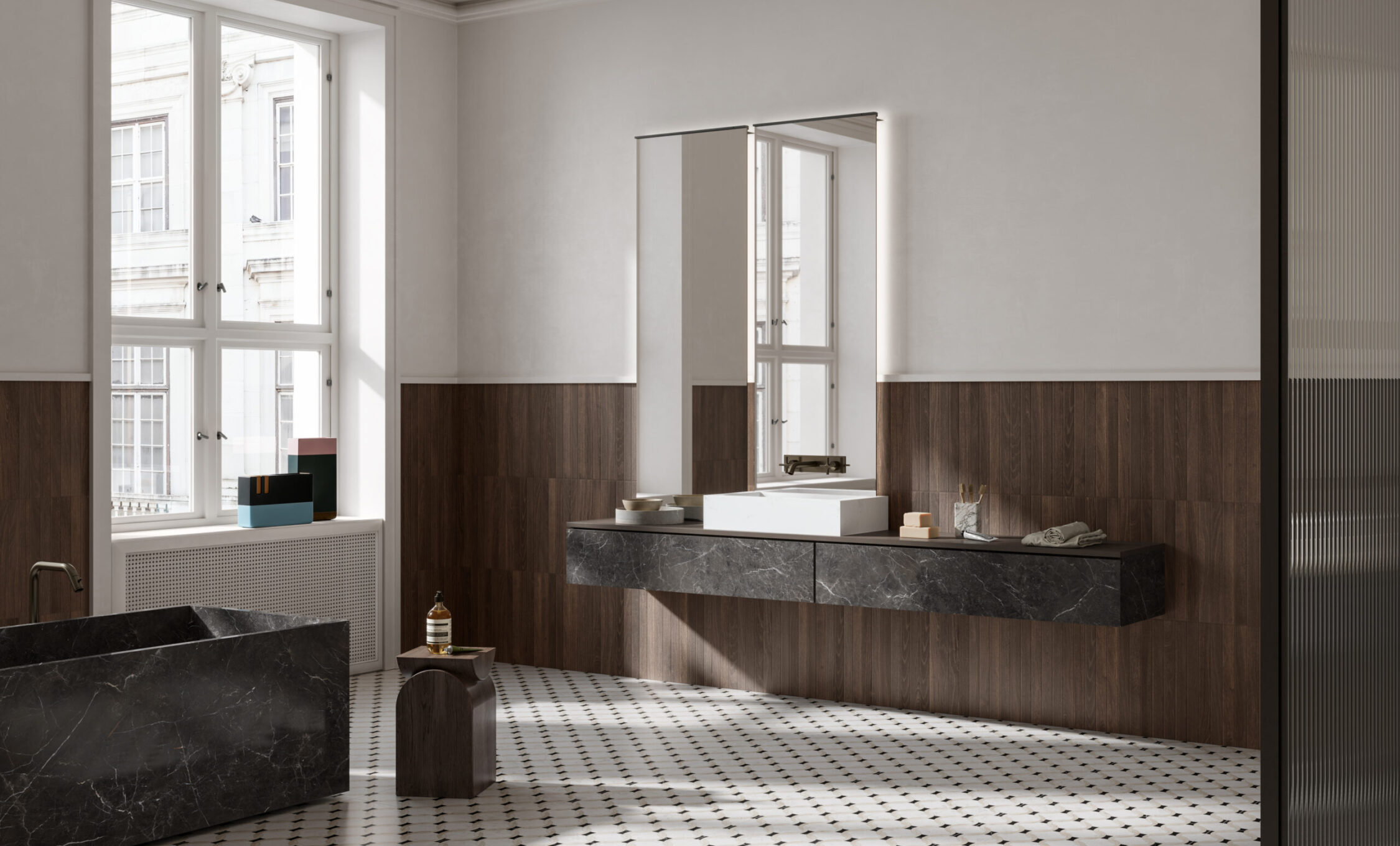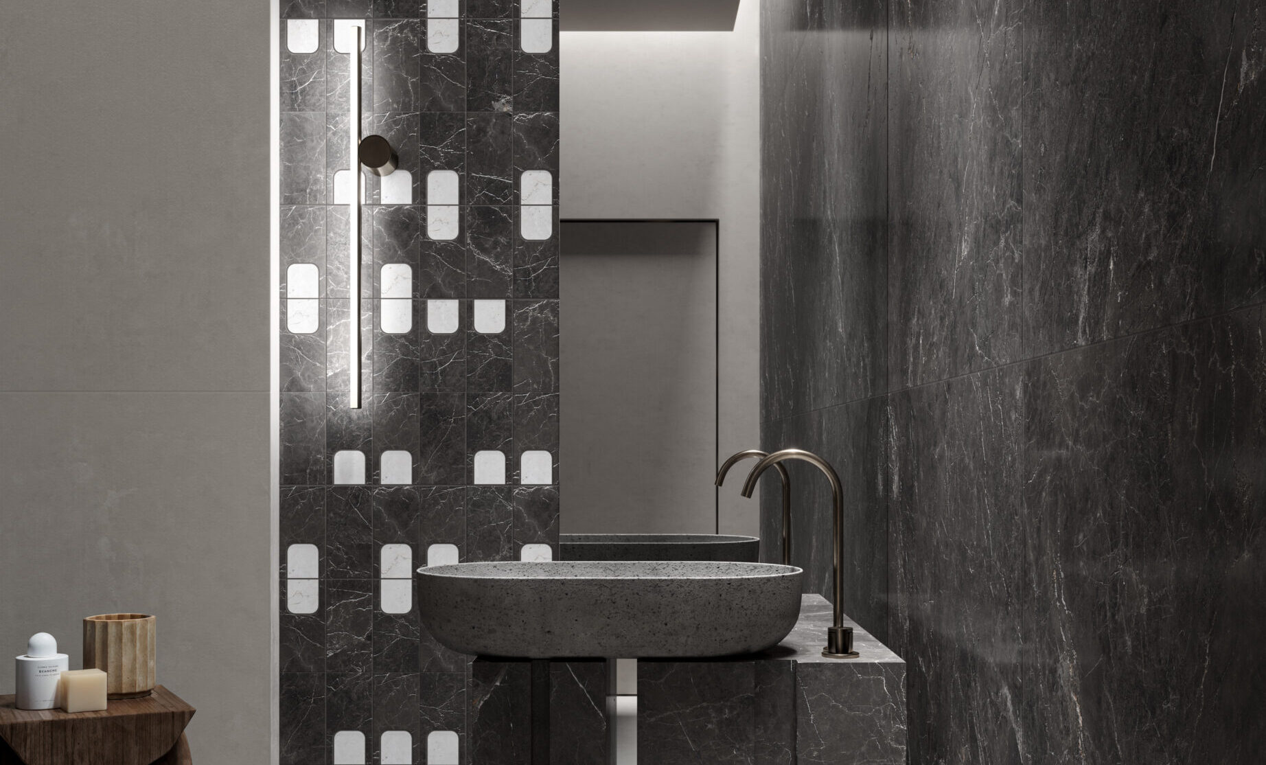 MATERIA VIVA nasce dall’incontro tra due marmi che interpretano luce e profondità: Biancone luminoso e essenziale, Mistik Brown caldo e avvolgente. Insieme creano equilibrio, eleganza e autenticità in ogni ambiente. La finitura 3D HONED accarezza le superfici con profondità alla vista e al tatto. I decori aggiungono ritmo e composizioni progettuali. Un linguaggio materico senza tempo, pensato per l’architettura contemporanea.