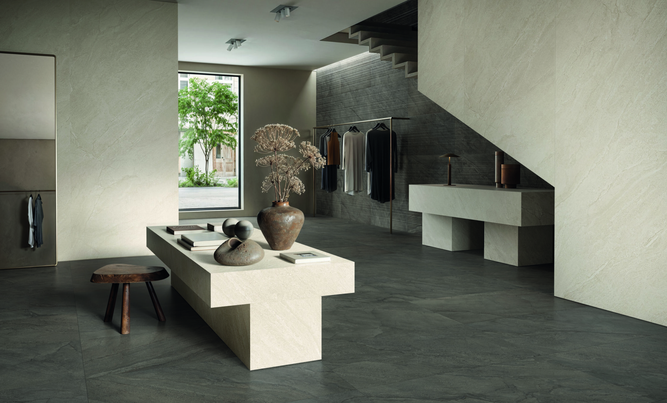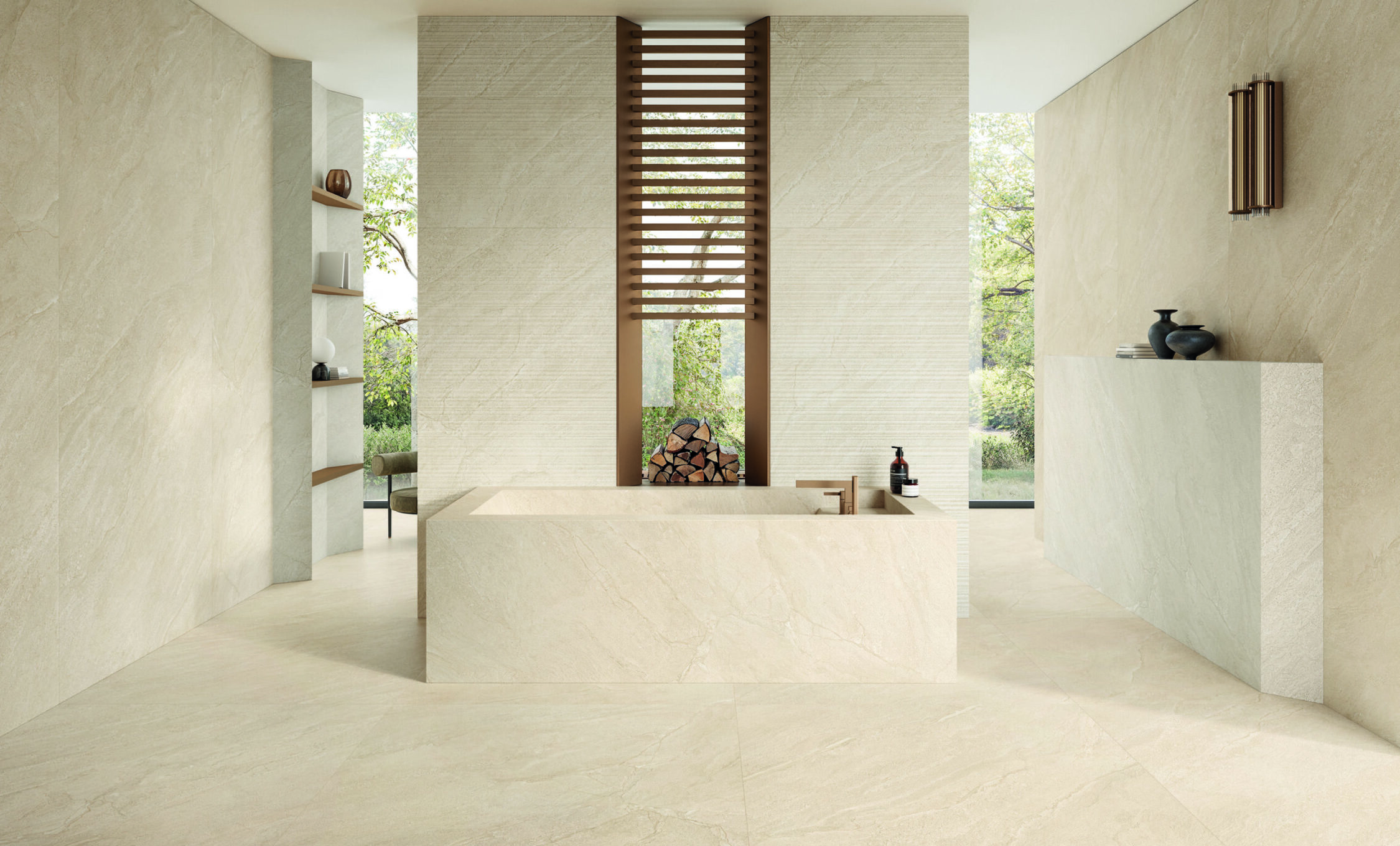 Ispirata alla breccia sarda, caratteristica della Sardegna, la collezione PIETRA DI OROSEI reinterpreta l’eleganza di una materia nobile con un linguaggio nuovo, più materico e attuale. Sebbene la breccia sarda sia classificata come marmo, il progetto ceramico ne esplora l’estetica come se fosse una pietra, accentuandone le sfumature naturali, le stratificazioni e l’anima minerale. Il risultato è una collezione di superfici ceramiche dal forte carattere materico, capaci di unire il fascino sofisticato del marmo e la raffinatezza della pietra. La texture si presenta ricca, profonda, quasi vibrante: rivela tracce irregolari e contrasti delicati, dove le venature, mai uguali a sé stesse, scorrono come filamenti naturali fluidi e fluenti. Pietra di Orosei è pensata per spazi contemporanei che cercano un equilibrio tra raffinatezza e matericità autentica.