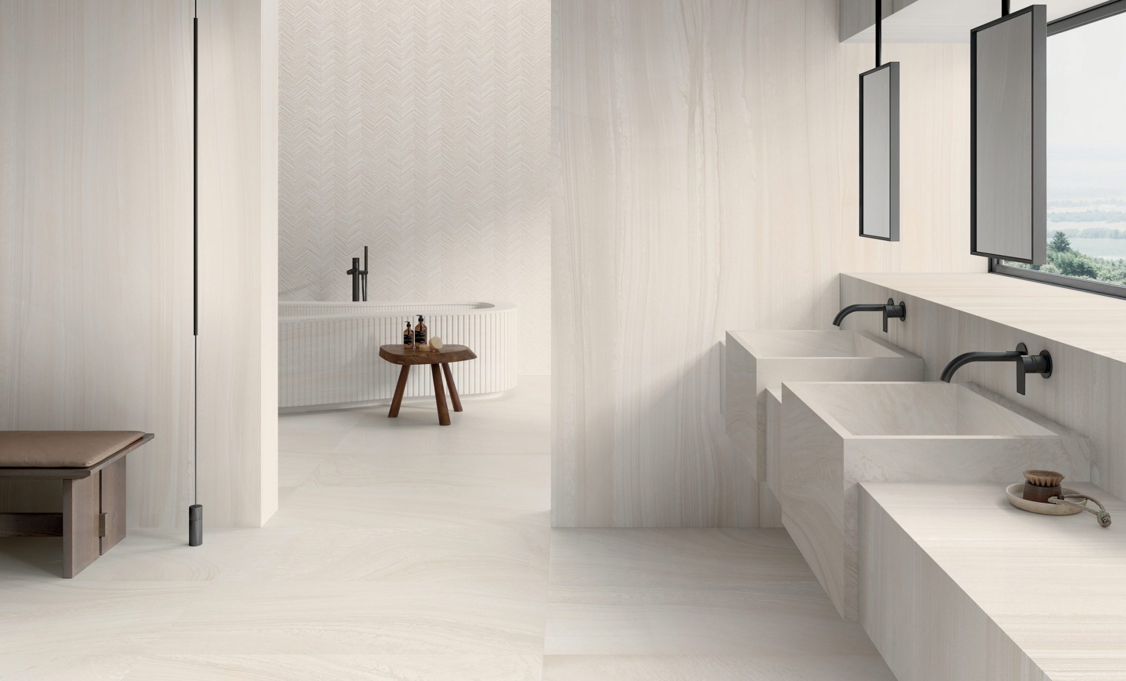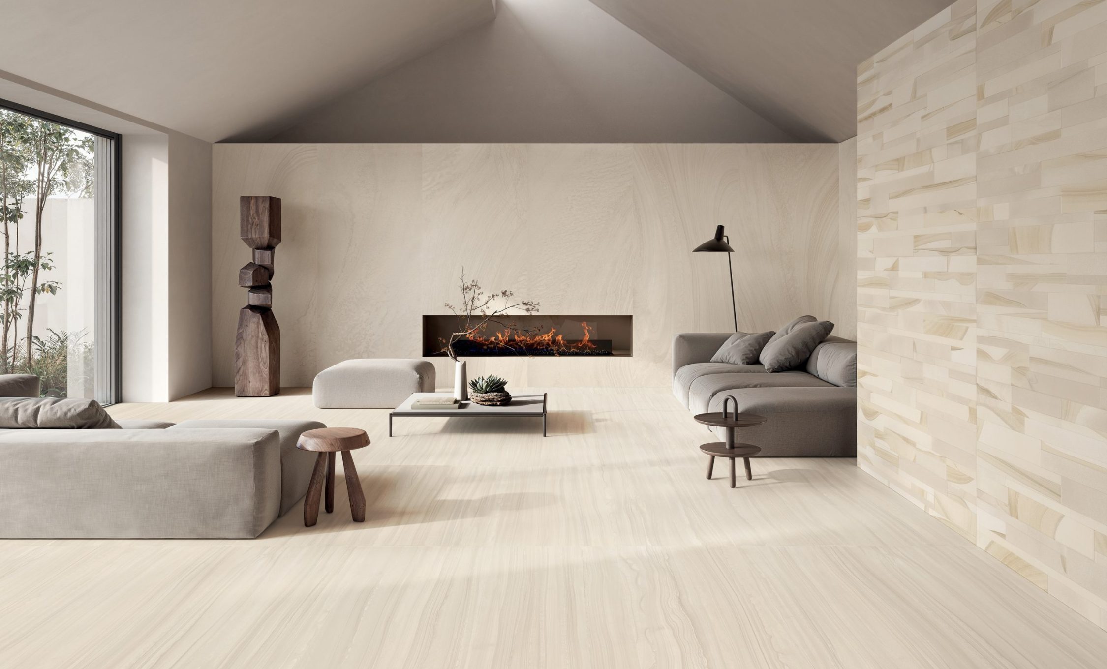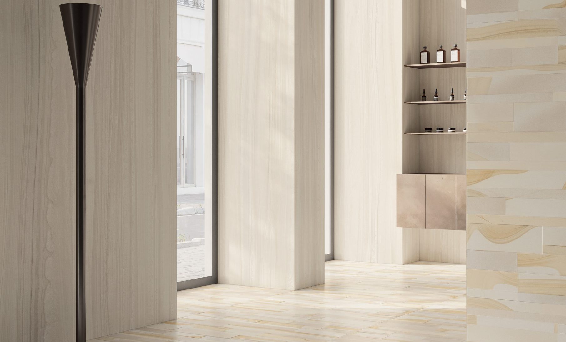 VARANA STONE si ispira alla caratteristica pietra estratta vicino al villaggio di Varana negli Appennini tra Toscana ed Emilia (Italia). È una roccia sedimentaria formata dall’accumulo di diversi tipi di sabbia su antichi fondali marini. Lo sviluppo grafico è caratterizzato da vari strati sedimentati che sembrano fluire in armonia tra loro, in un dialogo di Cross Cut & Vein Cut con l’aggiunta di due accenti decorativi tridimensionali distintivi, Tweed & Block, per offrire agli interior designer un prezioso ed estremamente naturale schema applicativo.