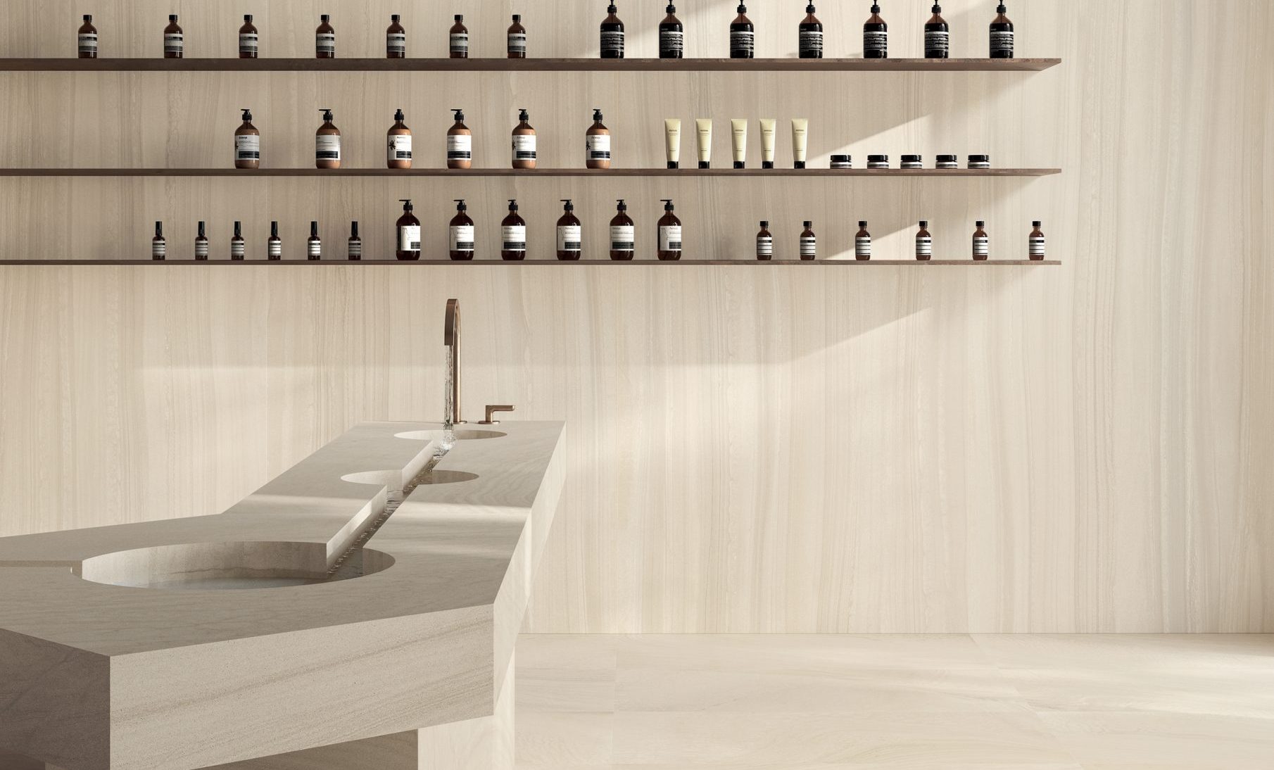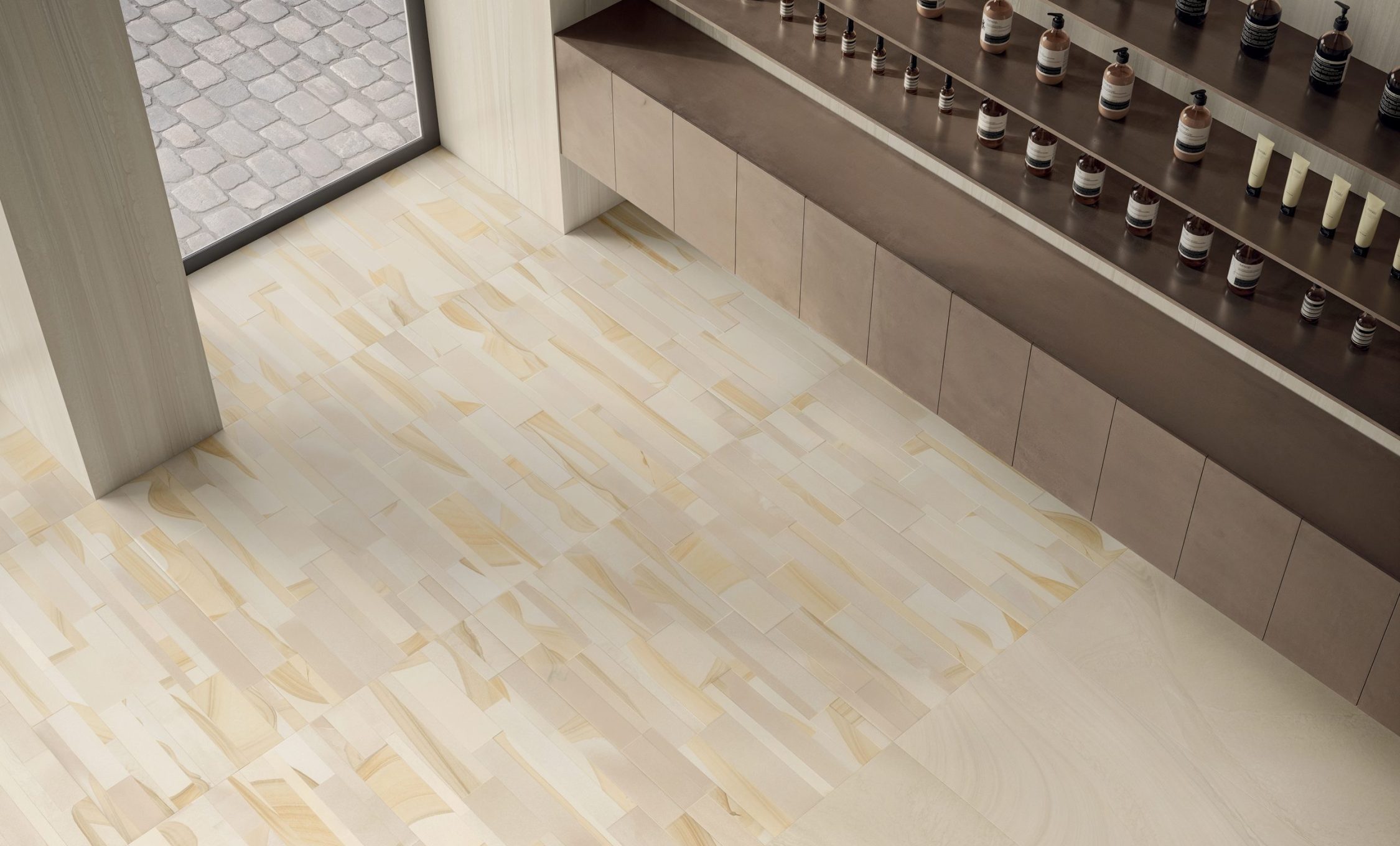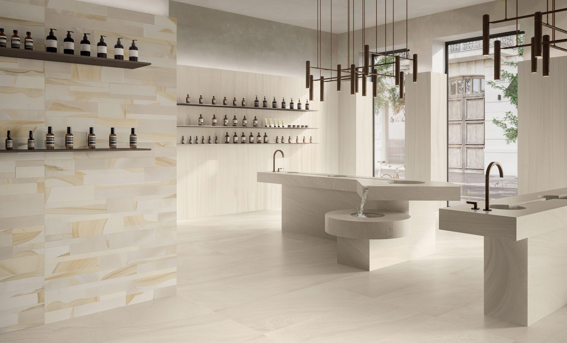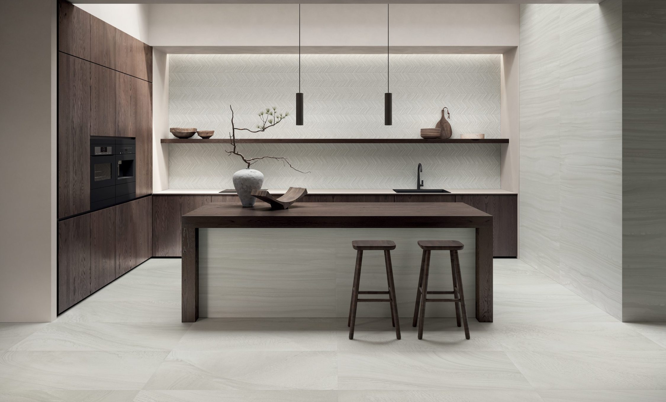 VARANA STONE si ispira alla caratteristica pietra estratta vicino al villaggio di Varana negli Appennini tra Toscana ed Emilia (Italia). È una roccia sedimentaria formata dall’accumulo di diversi tipi di sabbia su antichi fondali marini. Lo sviluppo grafico è caratterizzato da vari strati sedimentati che sembrano fluire in armonia tra loro, in un dialogo di Cross Cut & Vein Cut con l’aggiunta di due accenti decorativi tridimensionali distintivi, Tweed & Block, per offrire agli interior designer un prezioso ed estremamente naturale schema applicativo.